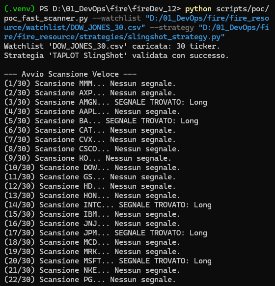 python scripts/poc/poc_fast_scanner_v3.py --watchlist "path/to/watchlist.csv" --strategy "path/to/strategy.py" --lookback 73. Risultato Atteso