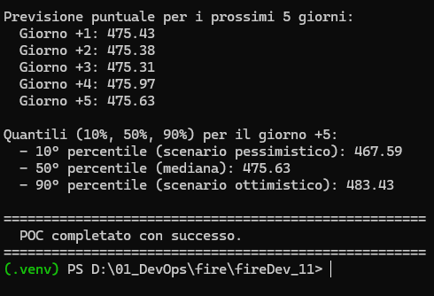 - Nessuna Valutazione di Accuratezza: Questo POC non confronta le previsioni con i dati reali futuri, quindi non fornisce alcuna indicazione sull’accuratezza del modello.