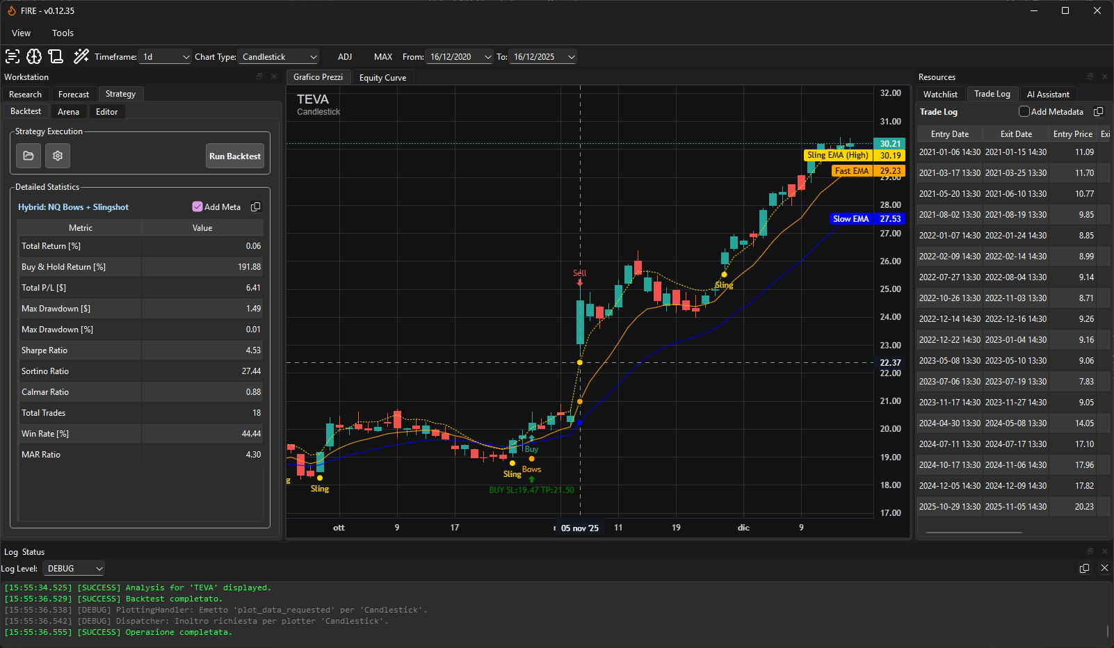 • Analisi Visiva: I marcatori di debug (pallini colorati) permettono di vedere quando i singoli componenti si attivano, aiutando il trader a capire se il mercato è in fase di setup (“Bows senza Sling” o “Sling senza Bows”).